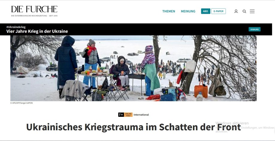 Vier Jahre Krieg in der Ukraine. Meine Reportage über ein Land im psychischen Ausnahmezustand erschien am 24. Februar 2026 in der österreichischen Wochenzeitung "Die Furche".